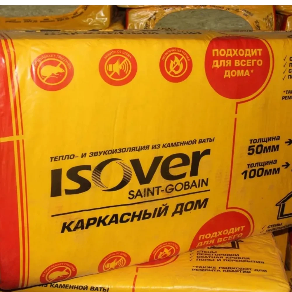 Isover Каркасный дом утеплитель - тепло- и звукоизоляционные плиты из минеральной ваты на основе каменного волокна. Производятся из природных компонентов вулканических пород базальтовой группы. Характеристики продукта обеспечивают универсальность в применении, простой и быстрый выбор.